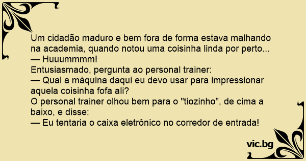 O personal trainer olhou bem para o "tiozinho", de cima a baixo, e disse: