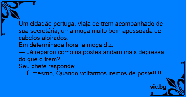 Um cidadão portuga, viaja de trem acompanhado de sua secretária, uma moça muito bem apessoada de cabelos aloirados.