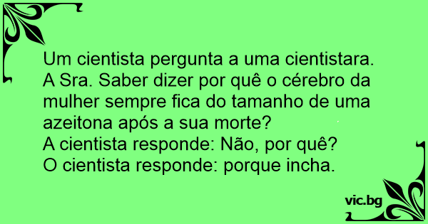Um cientista pergunta a uma cientistara. A Sra. Saber dizer por quê o cérebro da mulher sempre fiса do tamanho de uma azeitona após a sua morte?