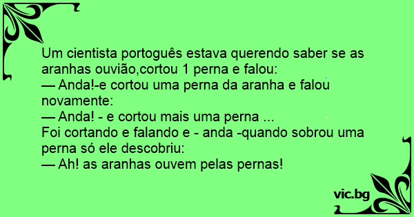 Um cientista portoguês estava querendo saber se as aranhas ouvião,cortou 1 perna e falou: