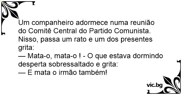Um companheiro adormece numa reunião do Comitê Central do Partido Comunista. Nisso, passa um rato e um dos presentes grita: