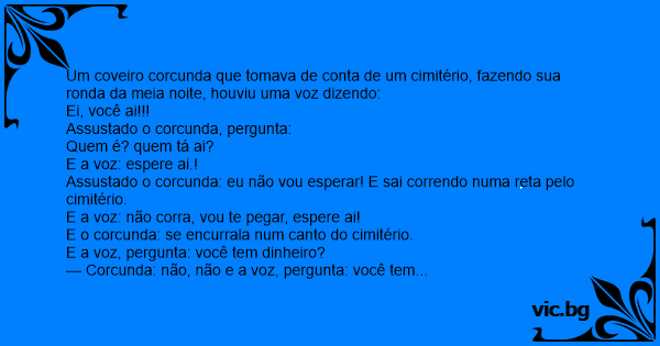 Um coveiro corcunda que tomava de conta de um cimitério, fazendo sua ronda da meia noite, houviu uma voz dizendo: