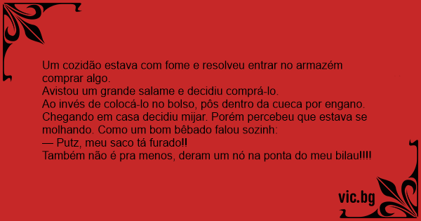 Um cozidão estava com fome e resolveu entrar no armazém comprar algo.