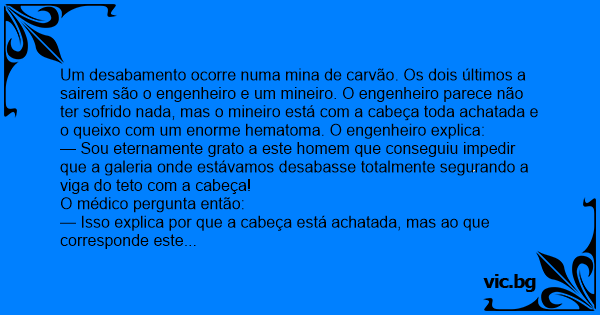 — Sou eternamente grato a este homem que conseguiu impedir que a galeria onde estávamos desabasse totalmente segurando a viga do teto com a cabeça!