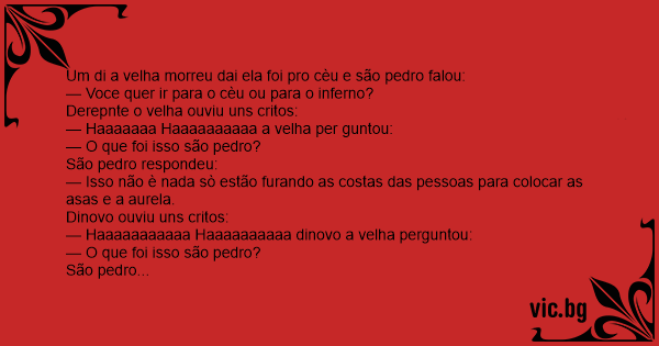 Um di a velha morreu dai ela foi pro cèu e são pedro falou: