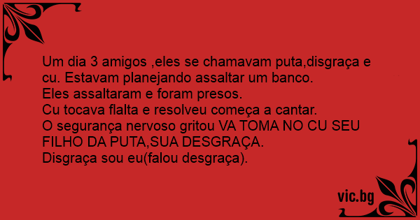 Um dia 3 amigos ,eles se chamavam рuта,disgraça e cu. Estavam planejando assaltar um banco.