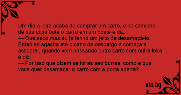 Um dia a loira acaba de comprar um carro, e no caminho de sua casa bate o carro em um poste e diz: