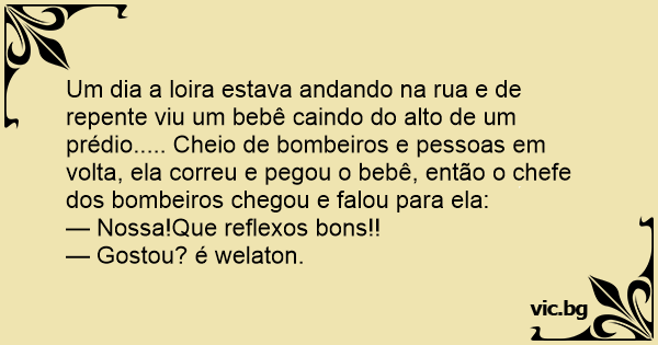Um dia a loira estava andando na rua e de repente viu um bebê caindo do alto de um prédio..... Cheio de bombeiros e pessoas em volta, ela correu e pegou o bebê, então o chefe dos bombeiros chegou e falou para ela: