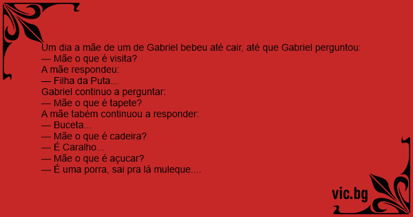Um dia a mãe de um de Gabriel bebeu até cair, até que Gabriel perguntou: