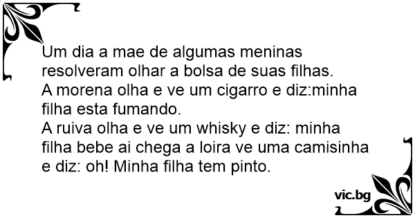 A ruiva olha e ve um whisky e diz: minha filha bebe ai chega a loira ve uma camisinha e diz: oh! Minha filha tem pinto.