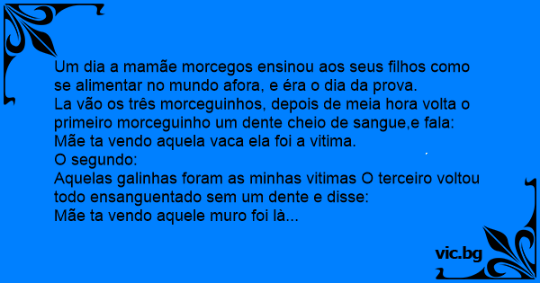 La vão os três morceguinhos, depois de meia hоrа volta o primeiro morceguinho um dente cheio de sangue,e fala: