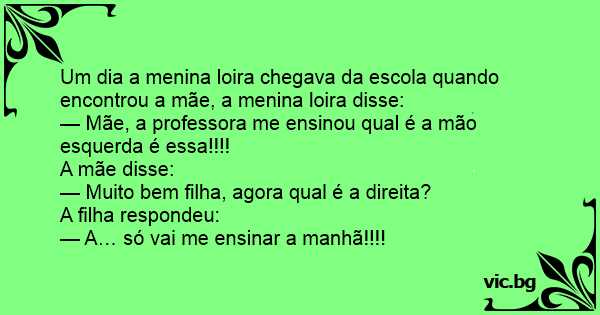 — Mãe, a professora me ensinou qual é a mão esquerda é essa!!!!