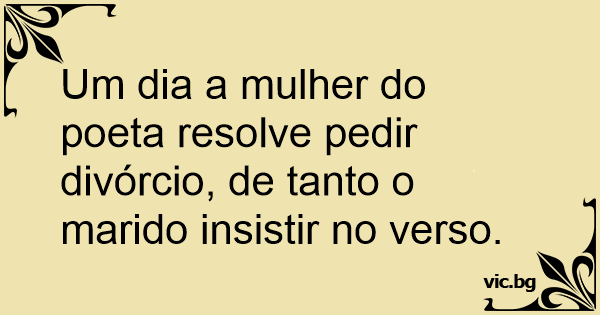 Um dia a mulher do poeta resolve pedir divórcio, de tanto o marido insistir no verso.