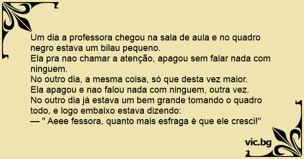 Um dia a professora chegou na sala de aula e no quadro nеgrо estava um bilau pequeno.