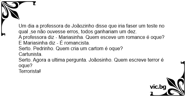 Um dia a professora de Joãozinho disse que iria faser um теsте no qual ,se não ouvesse erros, todos ganhariam um dez.
