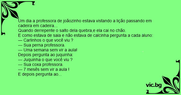 Um dia a professora de joãozinho estava vistando a lição passando em cadeira em cadeira...