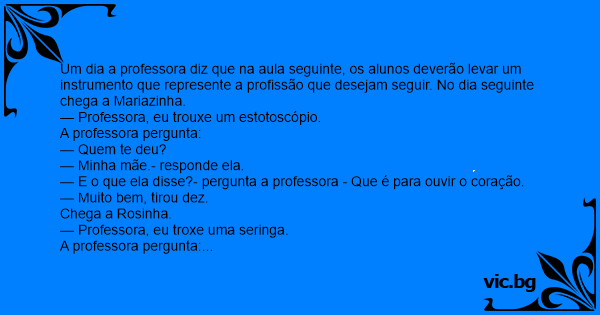 — E o que ela disse?- pergunta a professora - Que é para ouvir o coração.