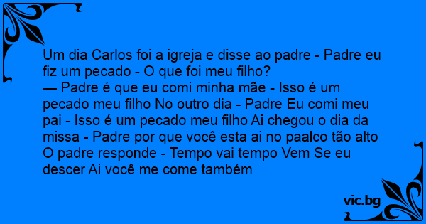 Um dia Carlos foi a igreja e disse ao padre - Padre eu fiz um pecado - O que foi meu filho?