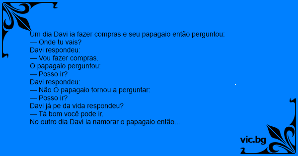 Um dia Davi ia fazer compras e seu papagaio então perguntou:
