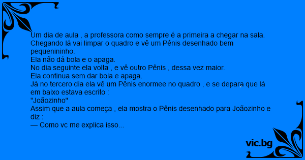 Assim que a aula começa , ela mostra o Pênis desenhado para Joãozinho e diz :