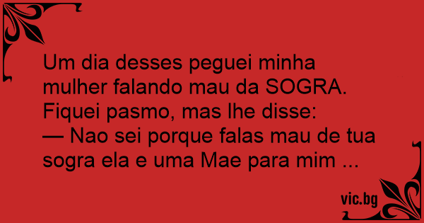 — Nao sei porque falas mau de tua sogra ela e uma Mae para mim ...