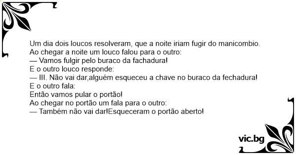 Um dia dois loucos resolveram, que a noite iriam fugir do manicombio.