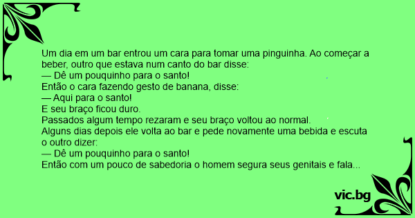 Então com um pouco de sabedoria o homem segura seus genitais e fala para o bêbado do canto do bar: