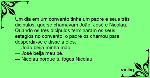 Um dia em um convento tinha um padre e seus três dicipulos, que se chamavam João, José e Nicolau.