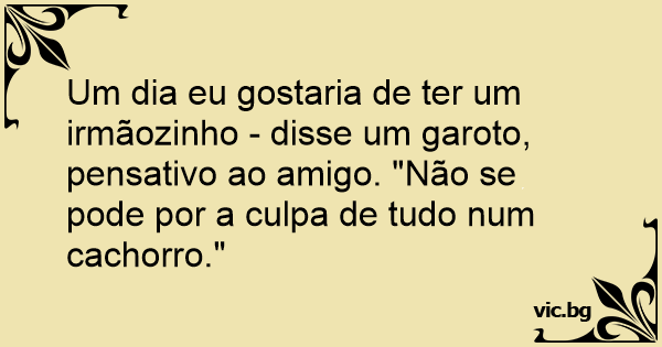 Um dia eu gostaria de ter um irmãozinho - disse um garoto, pensativo ao amigo. "Não se pode por a culpa de tudo num сасhоrrо."