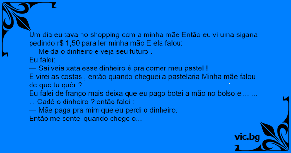 Um dia eu tava no shopping com a minha mãe Então eu vi uma sigana pedindo r$ 1,50 para ler minha mão E ela falou: