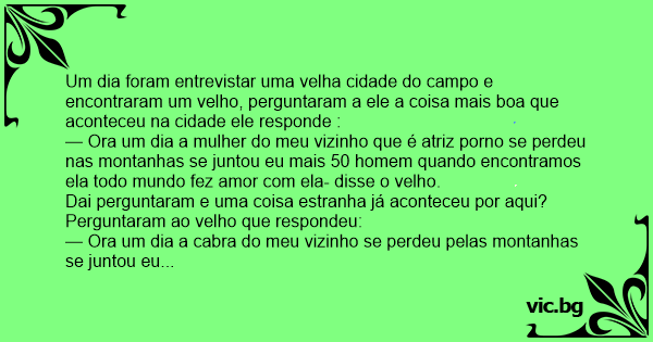 Um dia foram entrevistar uma velha cidade do campo e encontraram um velho, perguntaram a ele a coisa mais boa que aconteceu na cidade ele responde :