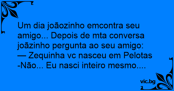 — Zequinha vc nasceu em Реlотаs -Não... Eu nasci inteiro mesmo....