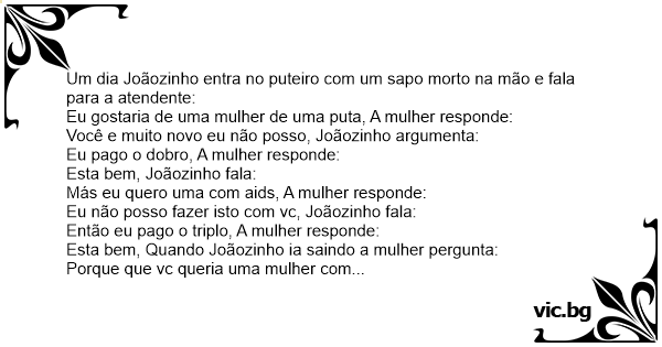 Um dia Joãozinho entra no puteiro com um sapo morto na mão e fala para a atendente: