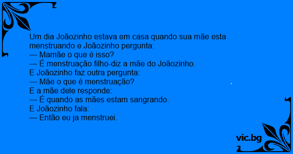 Um dia Joãozinho estava em casa quando sua mãe esta menstruando e Joãozinho pergunta: