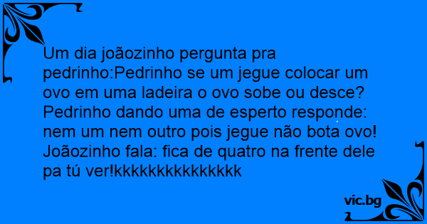 Um dia joãozinho pergunta pra pedrinho:Pedrinho se um jegue colocar um ovo em uma ladeira o ovo sobe ou desce?