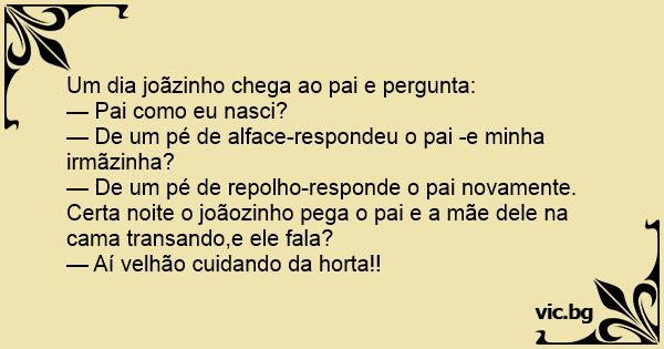 — De um pé de repolho-responde o pai novamente.