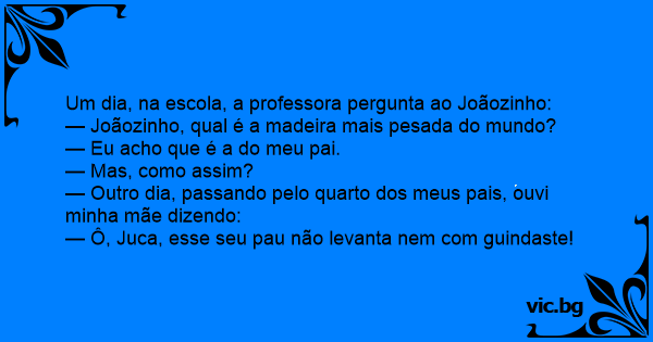 — Joãozinho, qual é a madeira mais pesada do mundo?