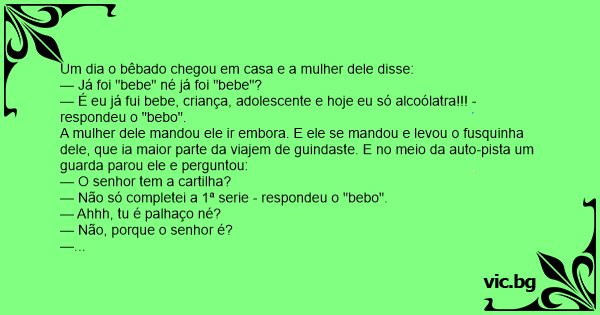 — É eu já fui bebe, criança, adolescente e hoje eu só alcoólatra!!! - respondeu o "bebo".