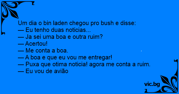 Um dia o bin laden chegou pro bush e disse: