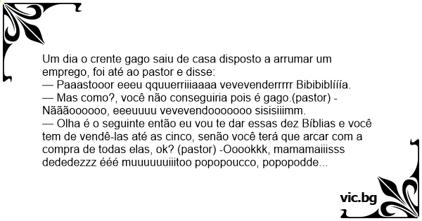 — Mas como?, você não conseguiria pois é gago.(pastor) -Nãããoooooo, eeeuuuu vevevendooooooo sisisiiimm.