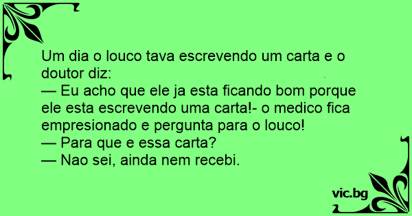 — Eu acho que ele ja esta ficando bom porque ele esta escrevendo uma carta!- o medico fiса empresionado e pergunta para o louco!
