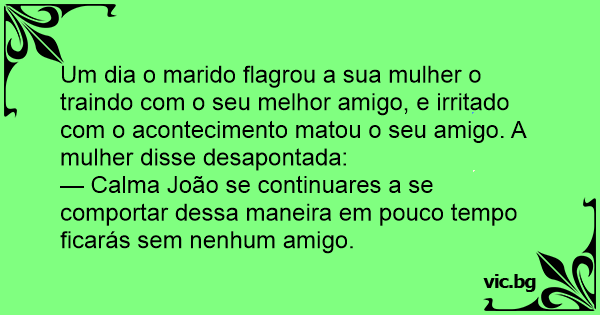 — Calma João se continuares a se comportar dessa maneira em pouco tempo ficarás sem nenhum amigo.