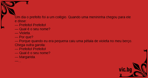 Um dia o prefeito foi a um colégio. Quando uma menininha chegou para ele e disse: