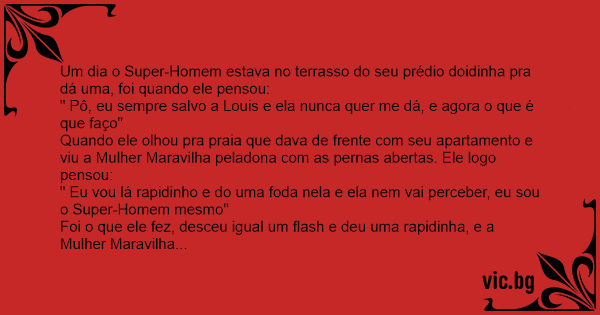 Um dia o Super-Homem estava no terrasso do seu prédio doidinha pra dá uma, foi quando ele pensou: