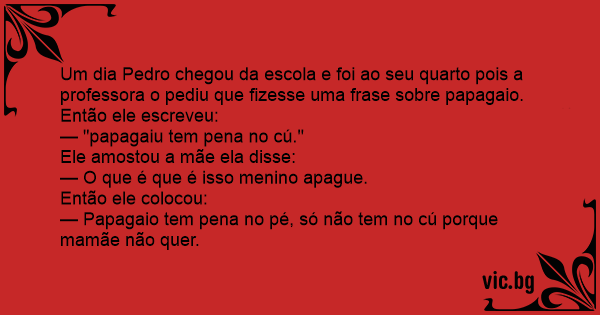 — Papagaio tem pena no pé, só não tem no cú porque mamãe não quer.
