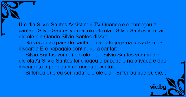 — Silvio Santos vem aí ole ole ola - Silvio Santos vem aí ole ole ola Aí Silvio Santos foi e jogou o papagaio na privada e deu discarga,e o papagaio começou a cantar: