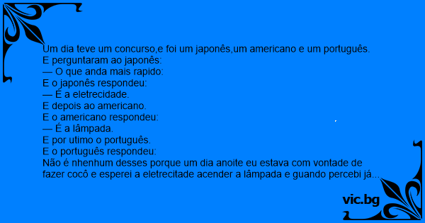 Um dia teve um concurso,e foi um japonês,um americano e um português.