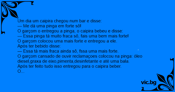 O garçom o entregou a pinga, o caipira bebeu e disse: