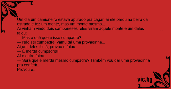 — Será que é меrdа mesmo cumpadre? Também vou dar uma provadinha prá conferir...