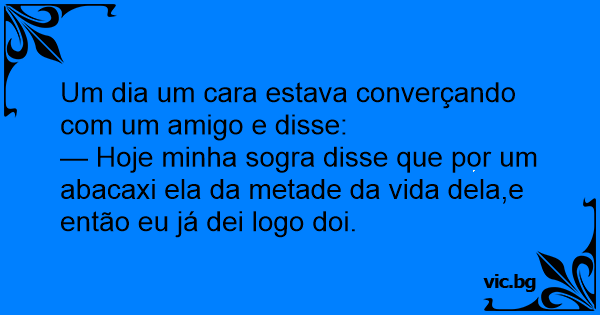 — Hoje minha sogra disse que por um abacaxi ela da metade da vida dela,e então eu já dei logo doi.